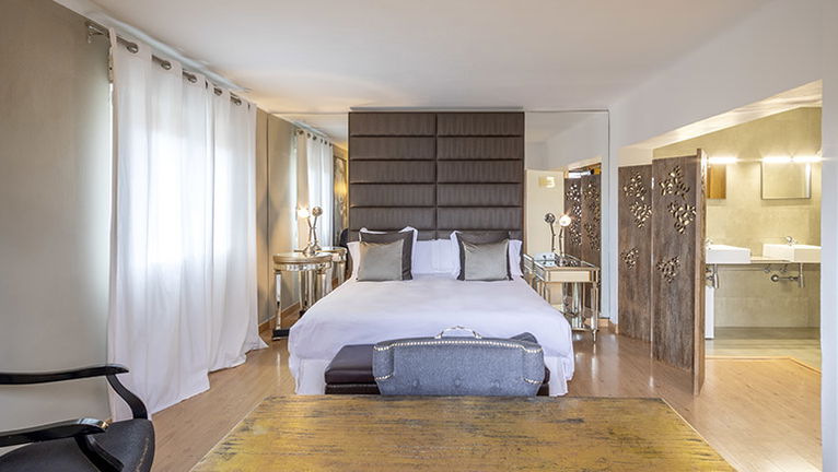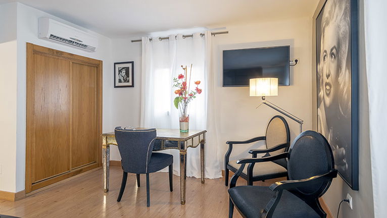 Dispone de una cama grande, un área de trabajo con escritorio, caja fuerte, TV de pantalla plana y mini-nevera.