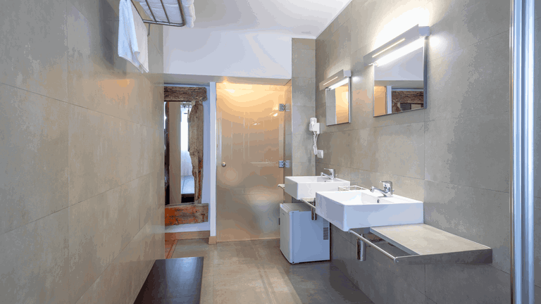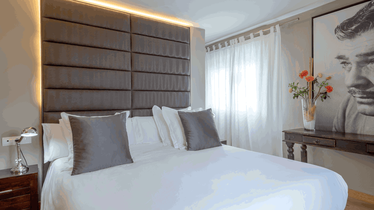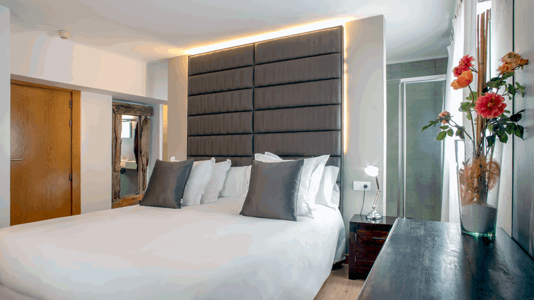 Esta habitación situada en la 5ª planta del hostal, a la cual se accede por ascensor hasta la 4ª planta más 1 planta por escaleras.