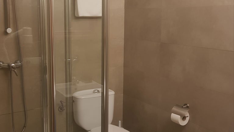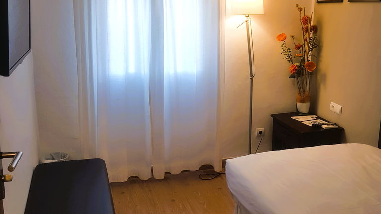 Esta habitación situada en la 5ª planta del hostal, a la cual se accede por ascensor hasta la 4ª planta más 1 planta por escaleras.